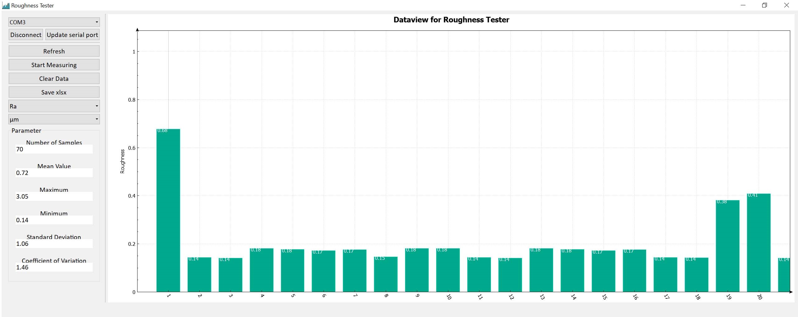 The 1.14” IPS TFT display shows choice of surface roughness parameter Ra, Rz, Rq and Rt at the touch of a button, combined with the selected cutoff length. External calibration of the surface roughness value is possible by means of a built-in calibration feature which makes adjustment of this instrument very easy. Data output via Bluetooth makes saving surface roughness results fast and easy.
